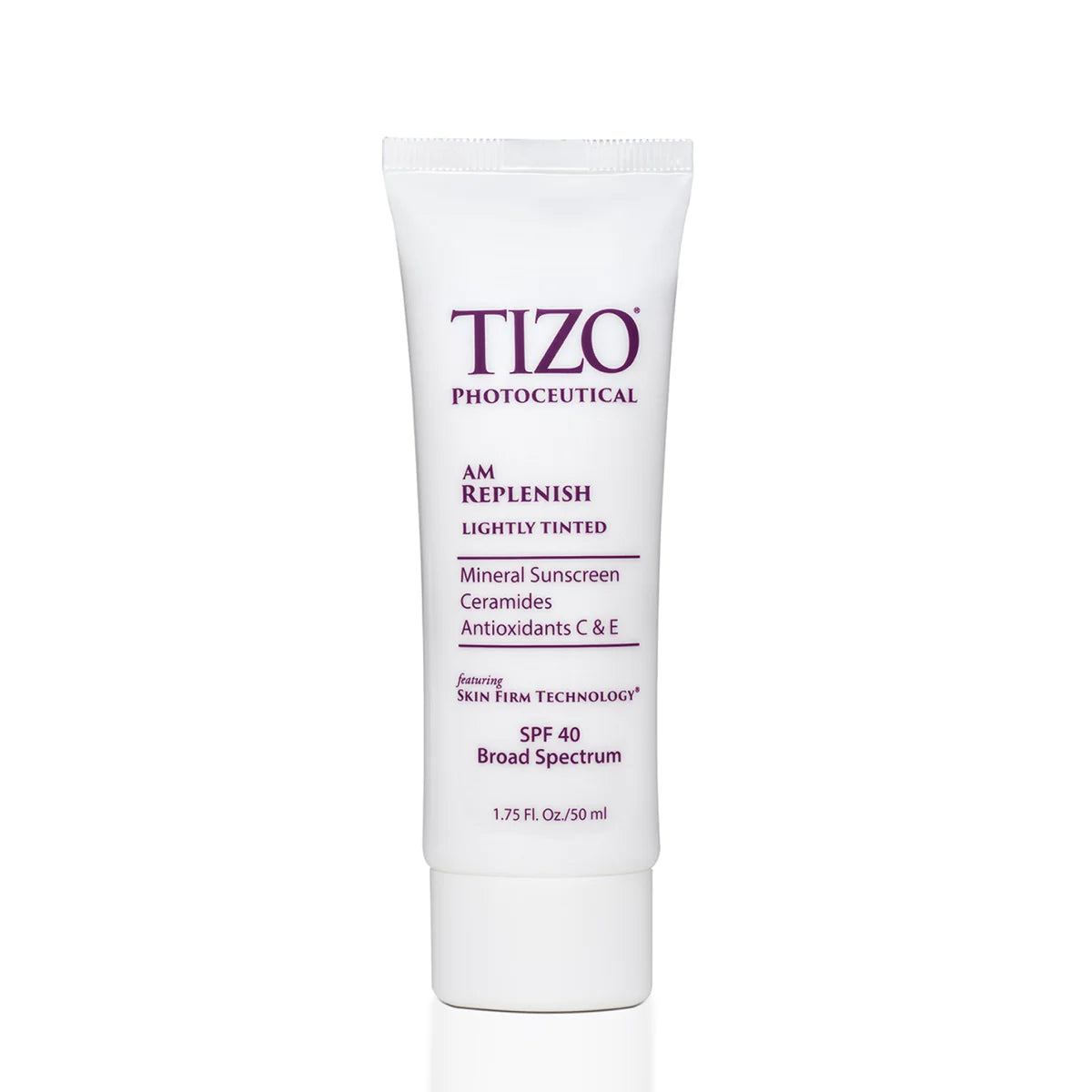 TIZO® AM Replenish is formulated with Zinc Oxide, Ceramides, and powerful Antioxidants (Vitamins C and E). Zinc Oxide protects against UV damage and Ceramides help restore the lipid layer. TIZO® AM Replenish helps prevent future UV damage and aids in the repair of existing damage resulting in long-lasting moisturization.
