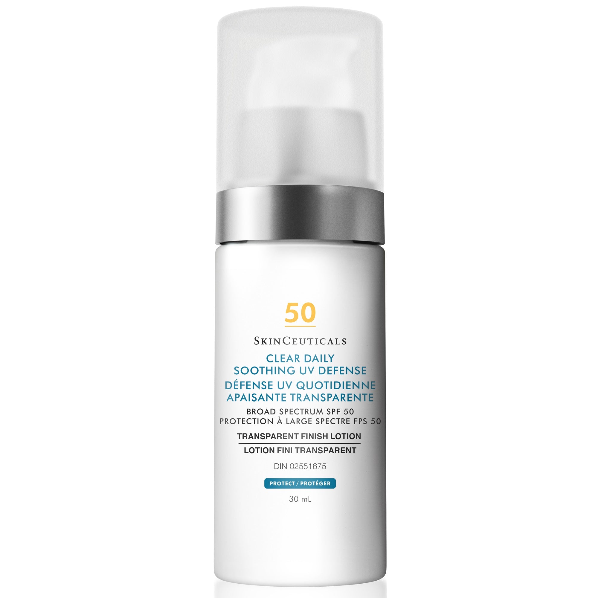 Clear Daily Soothing UV Defense is a broad-spectrum SPF 50. Formulated with calming Tripeptide technology and Bisabolol, it acts as a targeted first line of defense for sensitive skin, against UV induced inflammation. It calms skin, reduces visible redness, and smooths texture. Lightweight, non-greasy texture for daily UV protection.