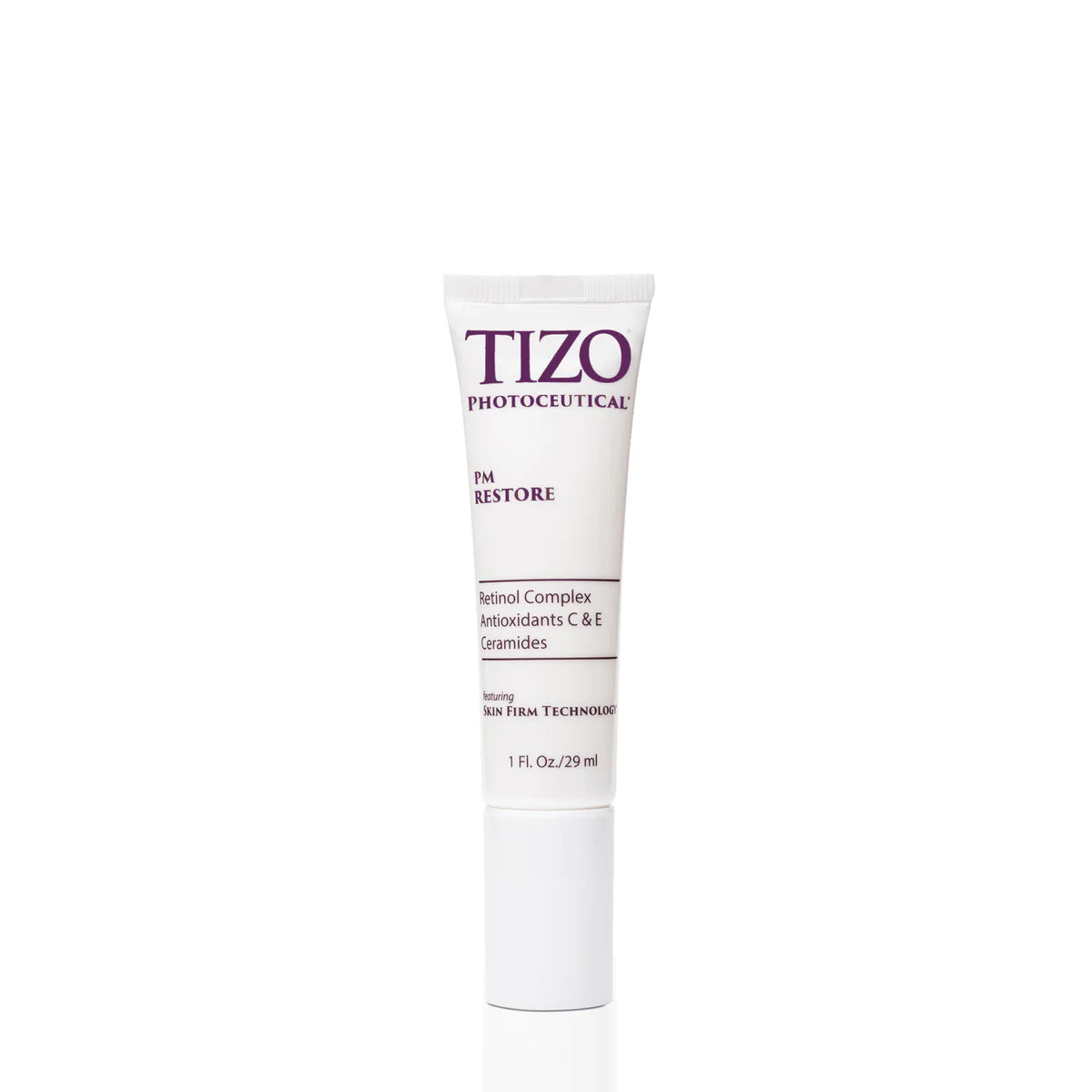 TIZO® PM Restore visibly corrects signs of aging by reducing the appearance of fine lines and wrinkles with little to no irritation. TIZO® PM Restore helps even out pigmentary irregularities and smoothness while improving skin firmness and texture. Formulated with antioxidants to protect against free radicals and initial UV damage.
