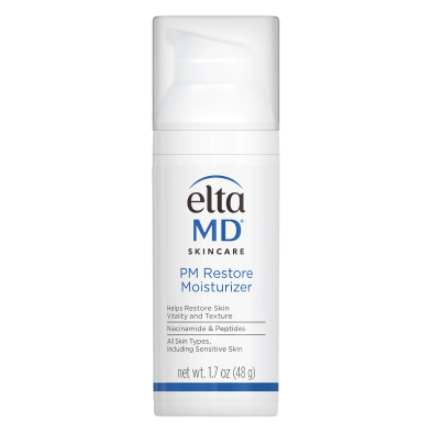 Every evening apply pearl-size dots of PM Restore Moisturizer to clean, moist skin. Gently massage the moisturizer onto your face, using circular upward and outward motions.